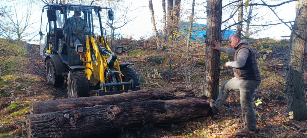 Das haben wir heute auch gemacht, aber unsere PS haben wir in Form von Bagger, LKW und Trecker angespannt, denn wir wollen am Kennel unser Trainingsgelände erweitern, und dafür wollen wir einen Zaun ziehen.