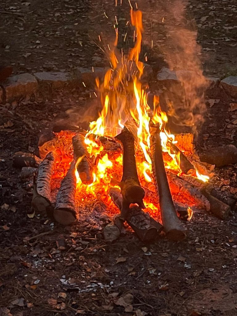 Für die Zuschauer haben wir noch eine Schauschleppe gelegt über eine große Wiese, damit sie die Hunde auch mal bei der Arbeit sehen und nicht nur hören, doch auch da haben wir etwas gemacht, was vielen ein Fragezeichen ins Gesicht brachte. Hier kam unsere Schleppenlegerin wieder zum Einsatz, die bis dahin hinten an den Hunden geritten war. Ohne Schleppgeschirr habe ich sie losgeschickt auf die Wiese, und die Hunde arbeiteten die Schleppe sehr schön aus. Ein Hund hatte aber bemerkt, dass ich nicht auf der Schleppe geritten bin und stand auf der Hälfte und schaute dem Pack zu, wie es lief, aber er hatte sich dann doch wieder mit angeschlossen. Nachdem die Hunde das Curée bekommen hatten und die Pferde versorgt waren, gab es Suppe in der Sandkuhle bei Lagerfeuer, um den Jagdtag ausklingen zu lassen.