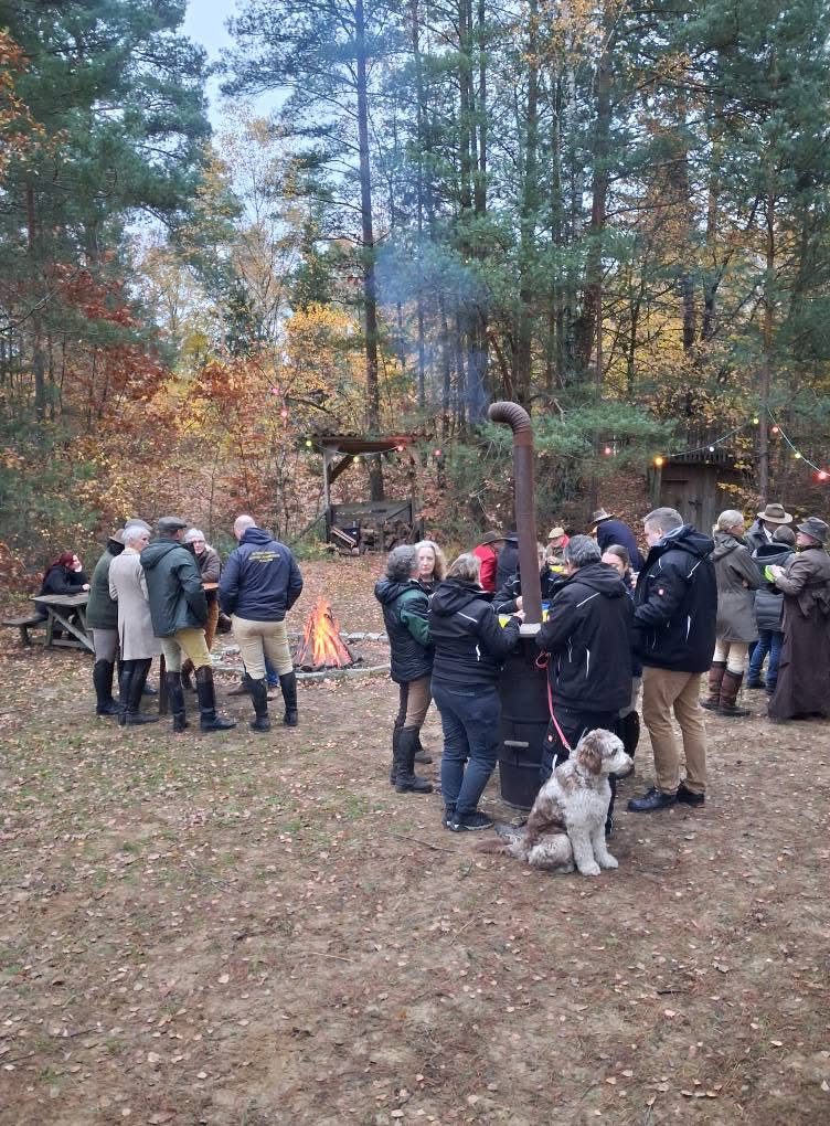 Als die Hunde das Curée verspeist hatten und alle Pferde versorgt waren, gab es für die Reiter und Zuschauer auch zum Trinken und Essen. Es waren sich alle einig, ob Zuschauer oder Reiter, dass dies ein gelungener Auftakt war. Wir freuen uns auf die nächste Jagd dort.