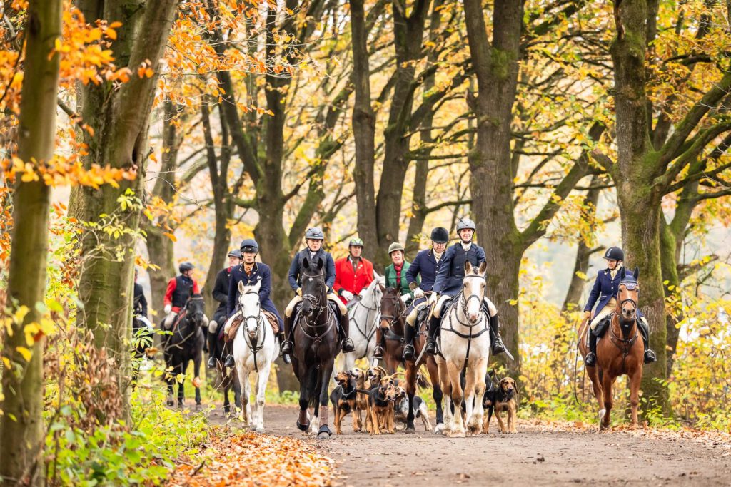 Dieser Tag war ein richtiger Herbsttag mit seinem tollen Farben in den Wäldern, wo man die Hörner der Bläser gut hörte und das Geläut der Hunde, alle Reiter und Zuschauer hatten viel Spaß.